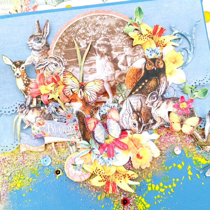 I also used some elements which I fussy cut from an old favorite collection, the gorgeous Woodland Friends.