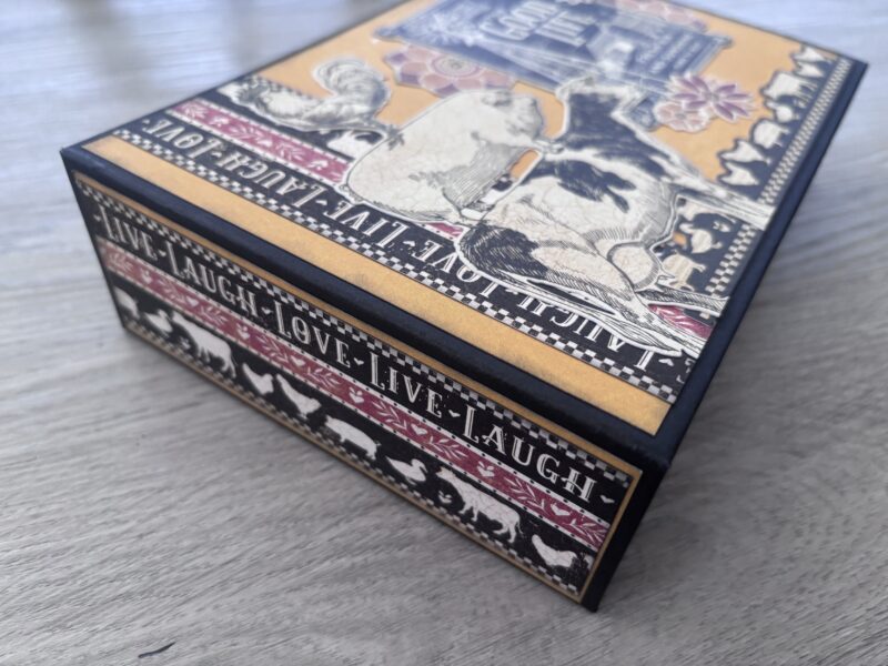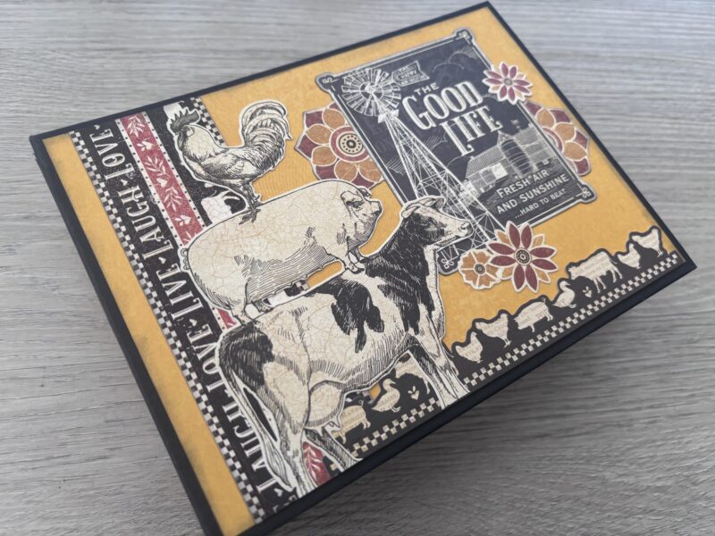 This Farmhouse Keepsake project shines because it blends strong focal pieces (like the farm animals and signage) with softer country patterns and warm, weathered tones. Don’t be afraid to layer big and small elements together for that cozy, collected feel.