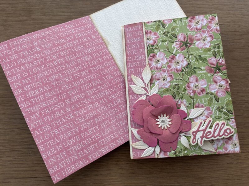 Tip: Before you cut, plan your panel sizes and identify which designs you want to feature on the front vs. inside of your cards. Botanical Tea papers are beautifully coordinated, so even small scraps can become layered accents, sentiments, or die-cut details—making this a perfect project for stretching your supplies and keeping waste to a minimum!