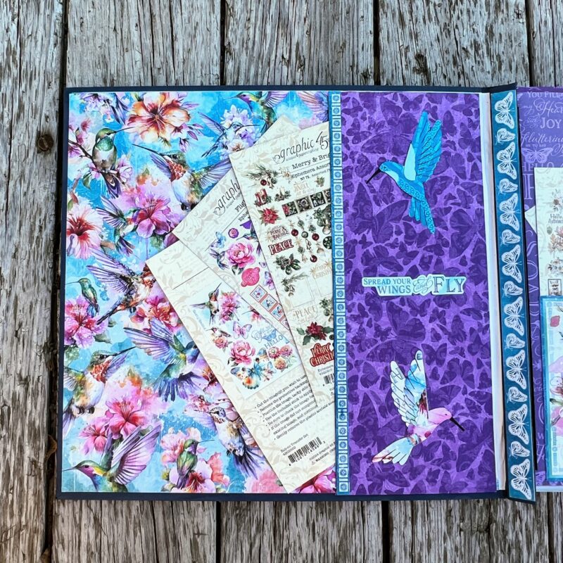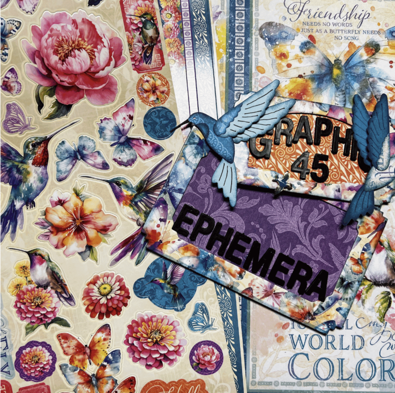 Say goodbye to misplaced die-cut pieces and hello to a beautifully crafted Ephemera Storage Album! Graphic 45 Brand Ambassador Gina Long has repurposed a 12×12 scrapbook album to create a functional and stunning solution for storing your ephemera sets. Using the vibrant Flight of Fancy paper collection, Gina transformed this album into a charming organizational tool reminiscent of an old-school sticker book. Follow along as she shares her creative process and tips to craft your very own Ephemera Storage Album!