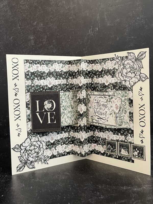 P.S. I Love You is the perfect card kit for people who love. Whether it’s for a wedding, anniversary, or that special someone, create beautiful cards with elegant colors and designs as only Graphic 45 can do. Your cards will be accompanied by detailed stamps with beautiful sentiments, a gorgeous rose and so much more! Slip the interactive pop-up cards inside a decorated envelope and send to someone you love, whether near or far. What a wonderful way to let someone know how much you care!
