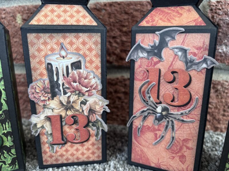 For a hauntingly beautiful finish, use inked edges and distressed layers from the Ghostly Greetings Patterns & Solids set. Add metal charms, twine, or acetate labels for a realistic “apothecary” touch. Don’t forget to personalize your bottle labels using ephemera pieces or stamps for a collector’s-cabinet feel!