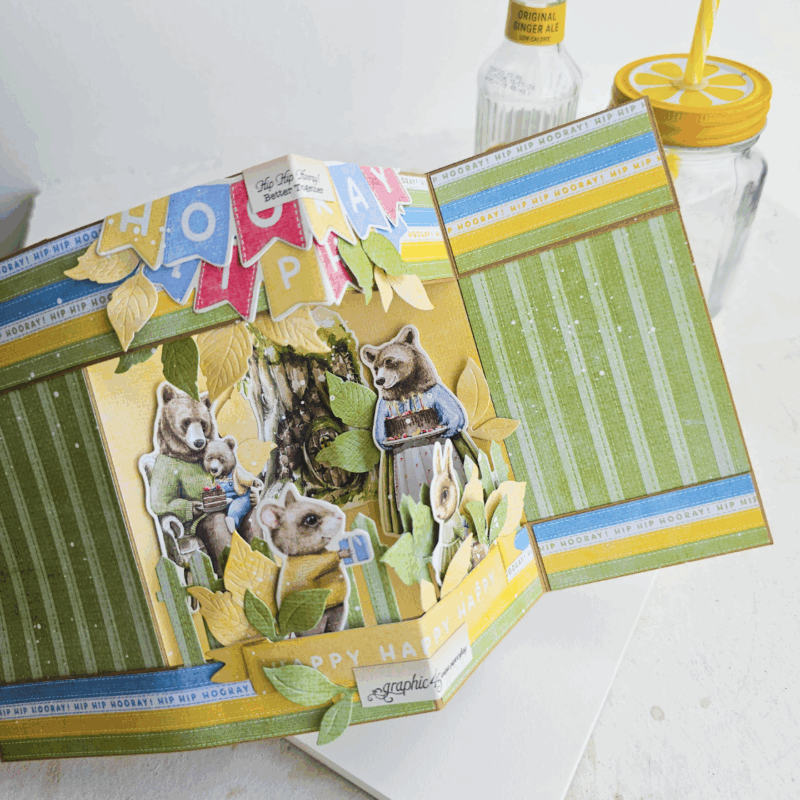 Today, we’re heading into the woods for a charming little celebration and you’re invited! I’ve created a cheerful pop-up Z Fold card using the beautiful Graphic 45 “Hip Hip Hooray” collection and it’s perfect for bringing birthday smiles and forest vibes to your cardmaking table.