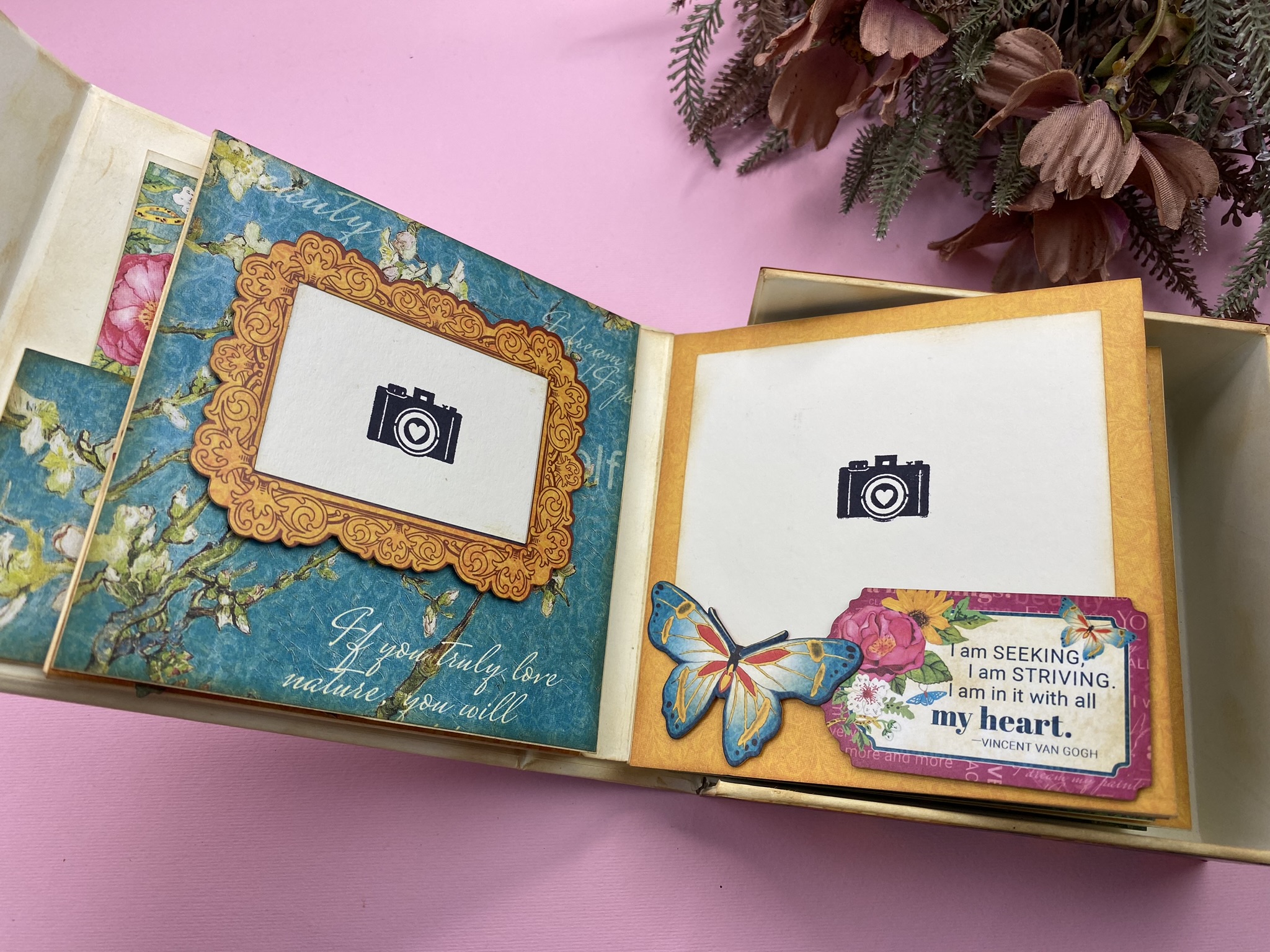Adhere the album inside the box once you’ve covered it with your favorite G45 papers and embellishments!