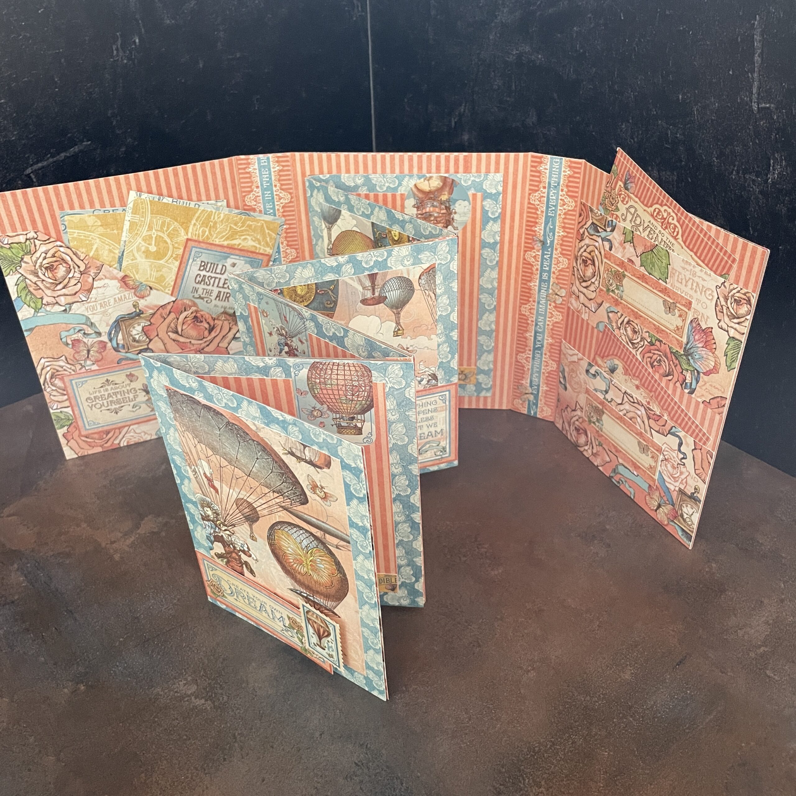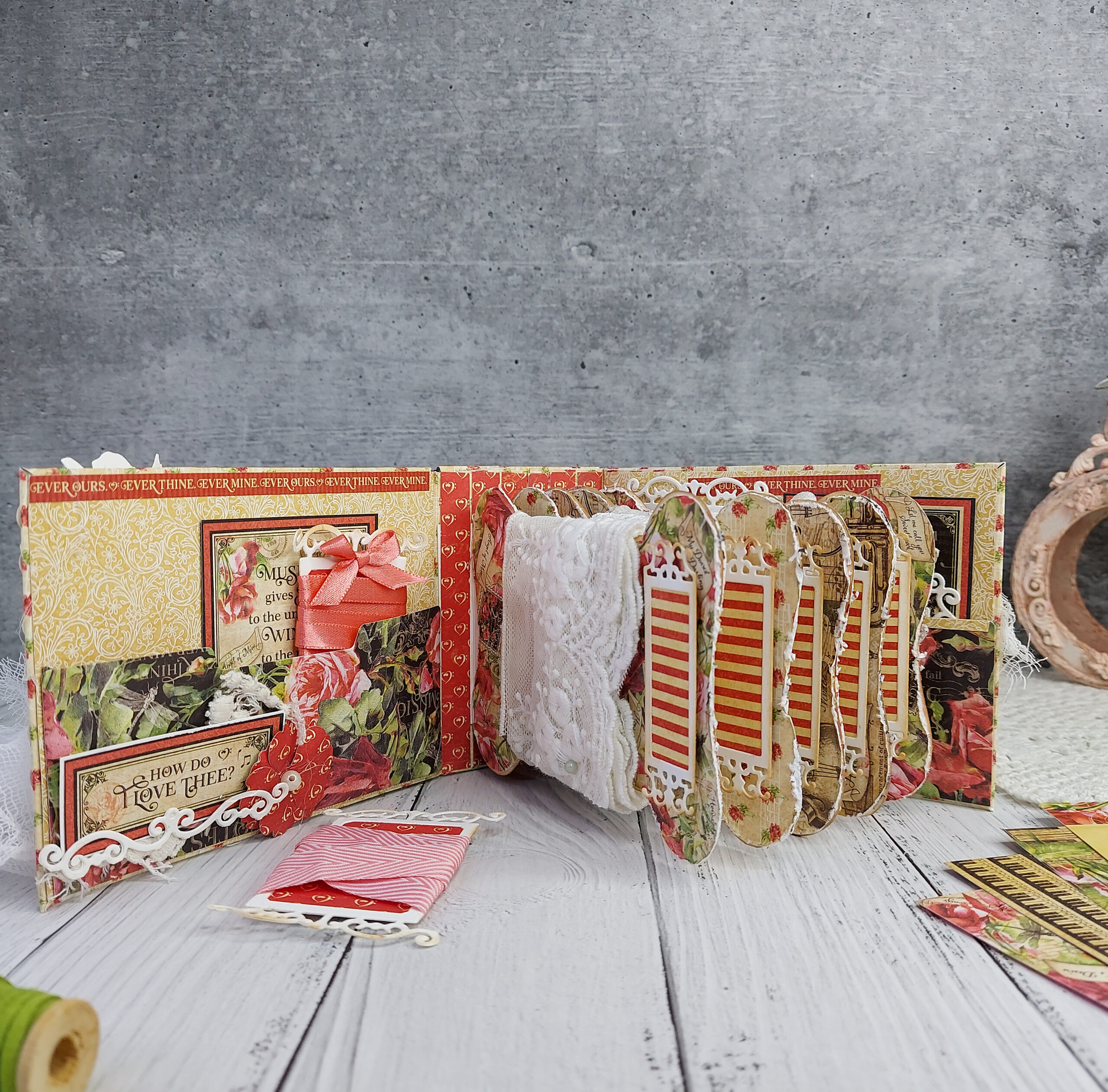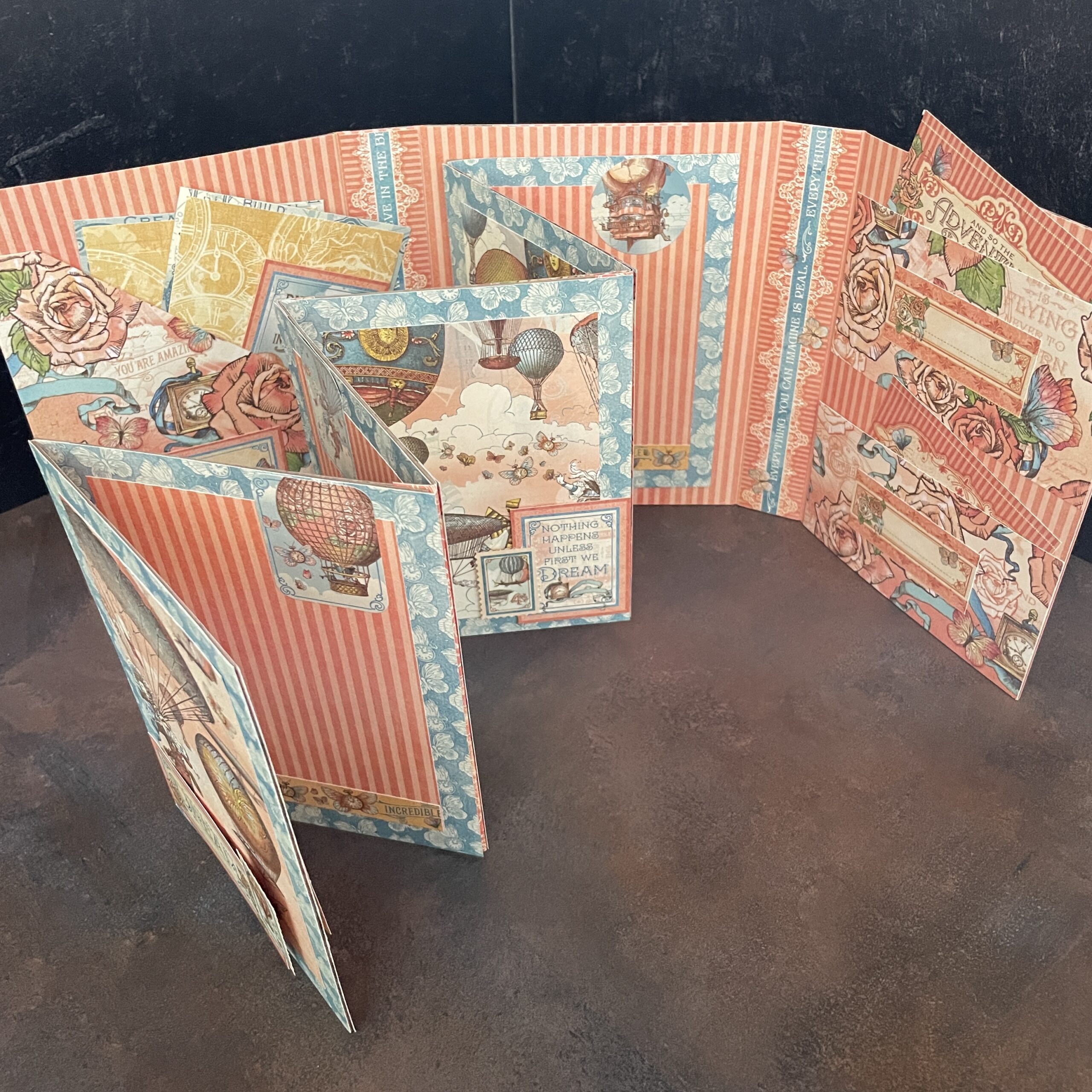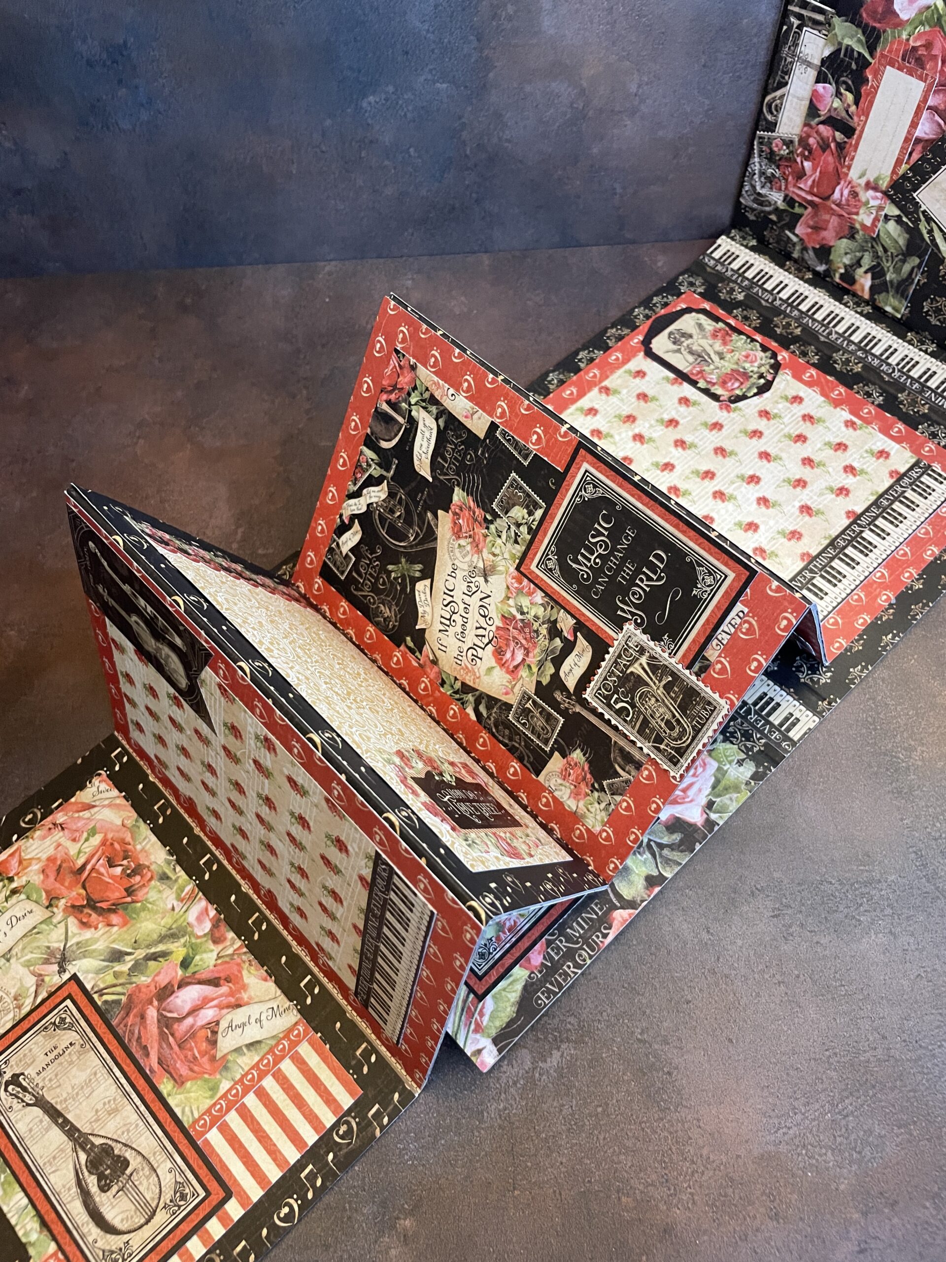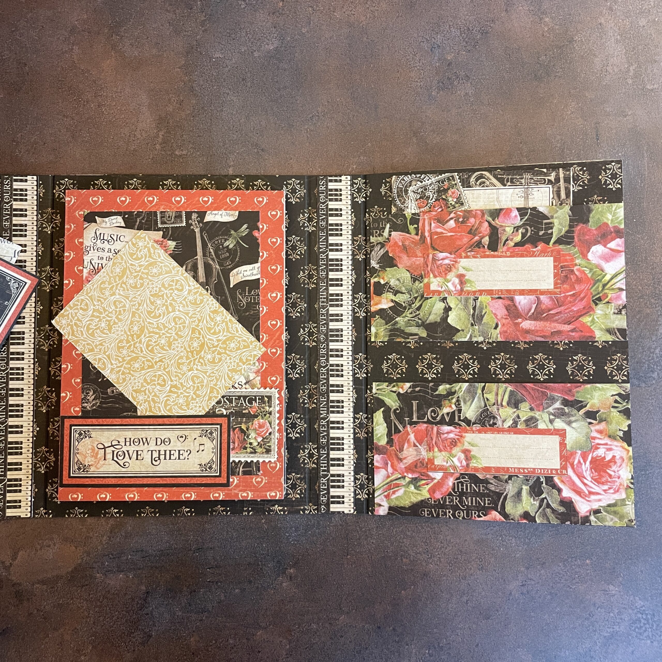 End the year on a high note with two interactive albums designed from one easy-to-follow tutorial! You will create two simple yet stunning Accordion Folios featuring two Collector’s Edition collections. From the vintage musical theme in Love Notes to iconic steampunk imagery from Imagine, your albums will be sure to impress. To make creating a breeze, both Accordion Folios feature the same layout that includes various pockets, flaps, and an expanding set of photo mats.