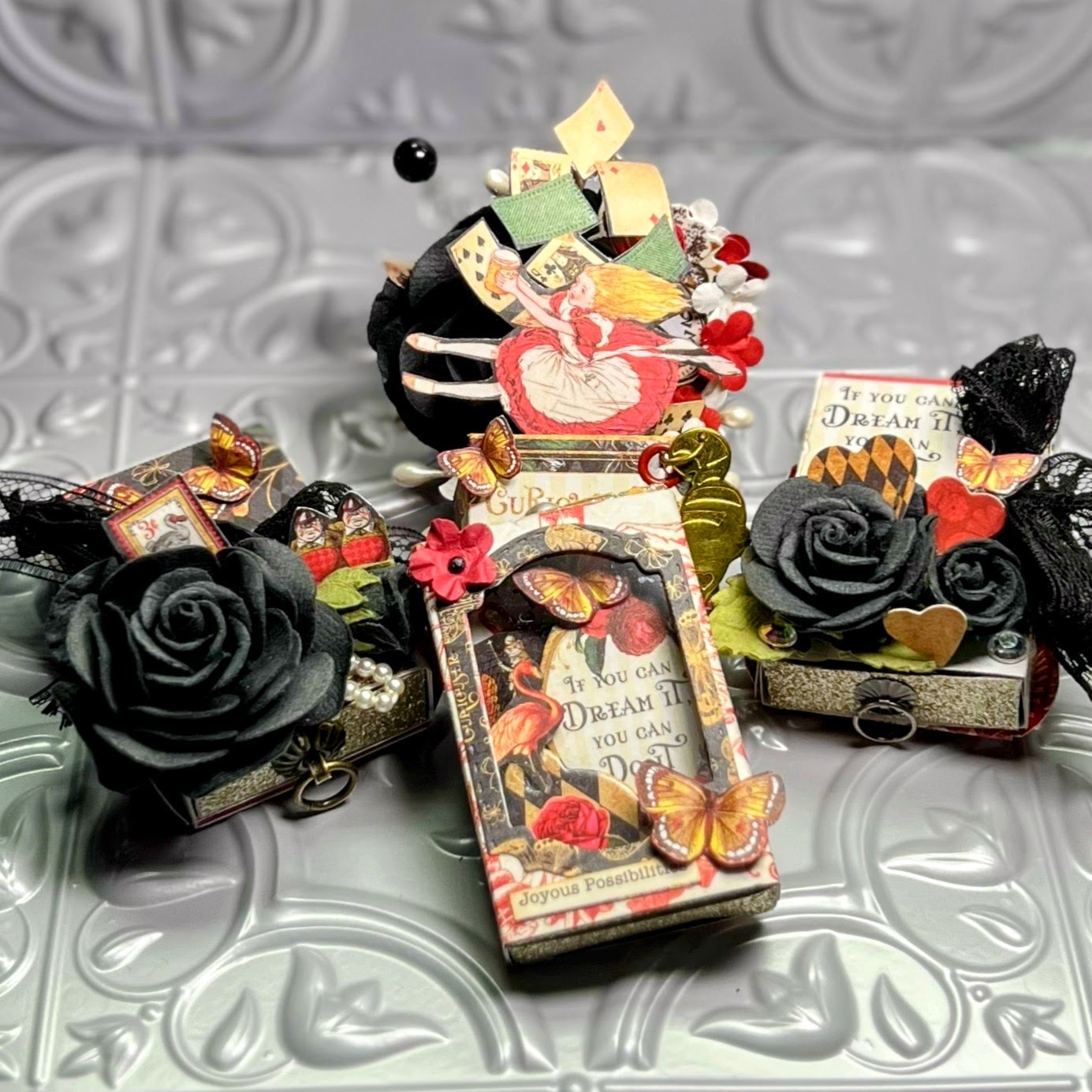 With bold reds, blacks, and golds, this collection is an ideal choice for creating romantic Valentine’s cards, heartfelt gifts, or even vintage-inspired home décor. Whether your customers are seasoned crafters or just starting out, this collection will inspire countless Alice in Wonderland-themed creations.