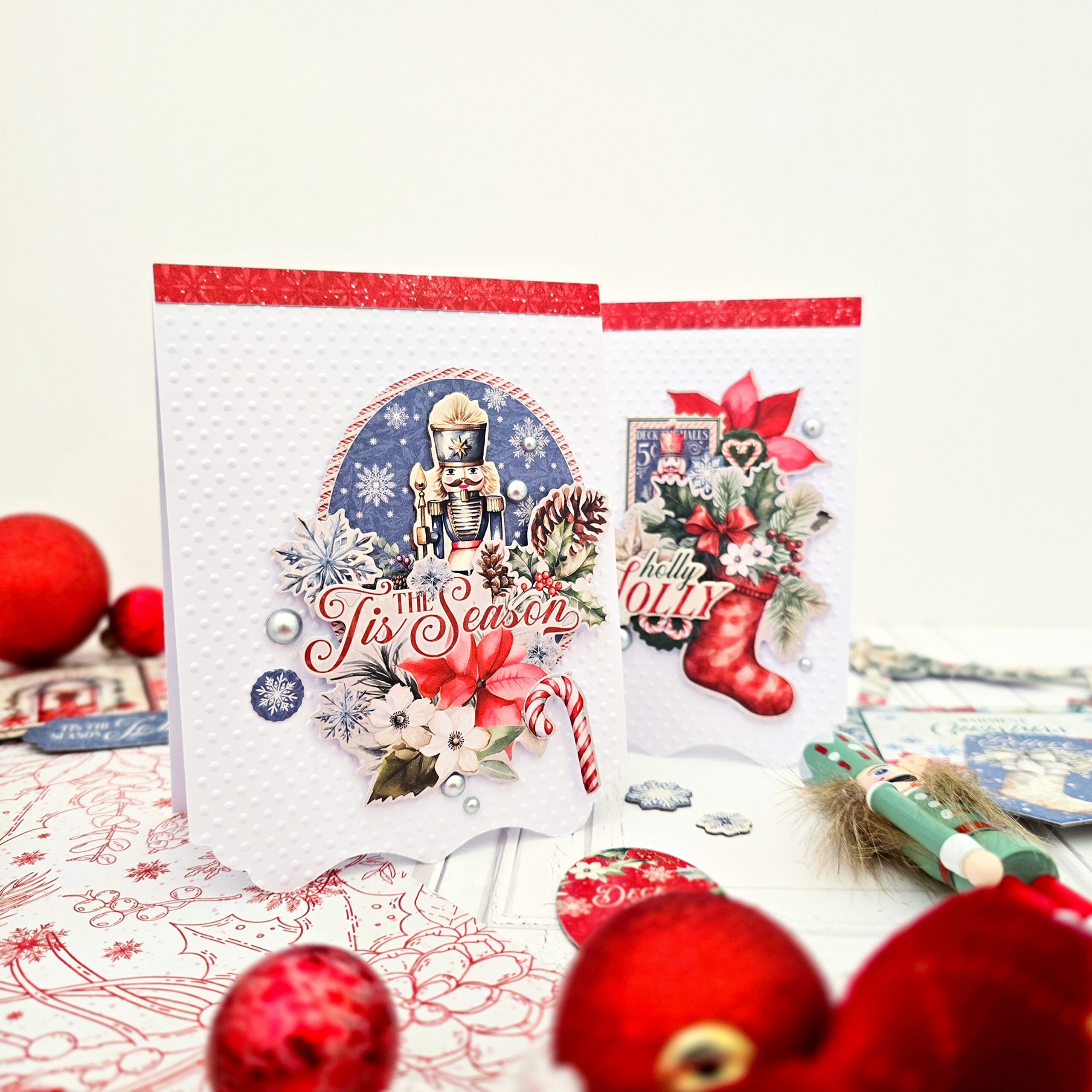 Celebrate the magic of the season with Graphic 45’s Deck the Halls Paper Collection – a festive journey into the heart of holiday cheer. This charming Christmas collection is wrapped in classic yuletide imagery, from nutcrackers and jolly stockings to pinecones, poinsettias, and plaid. Set against a cozy palette of cranberry red, evergreen, soft cream, and frosty blue, Deck the Halls captures the nostalgic warmth of home for the holidays.