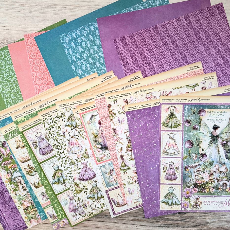 Step into a whimsical wonderland with Graphic 45’s Fairy Boutique Paper Collection – where delicate wings flutter, fairy gowns sway, and enchanted gardens bloom with magic. Drenched in a dreamy palette of Aero Blue, Lilac Lavender, Posey Pink, and Spring Green, this collection brings a soft, ethereal charm to every page.