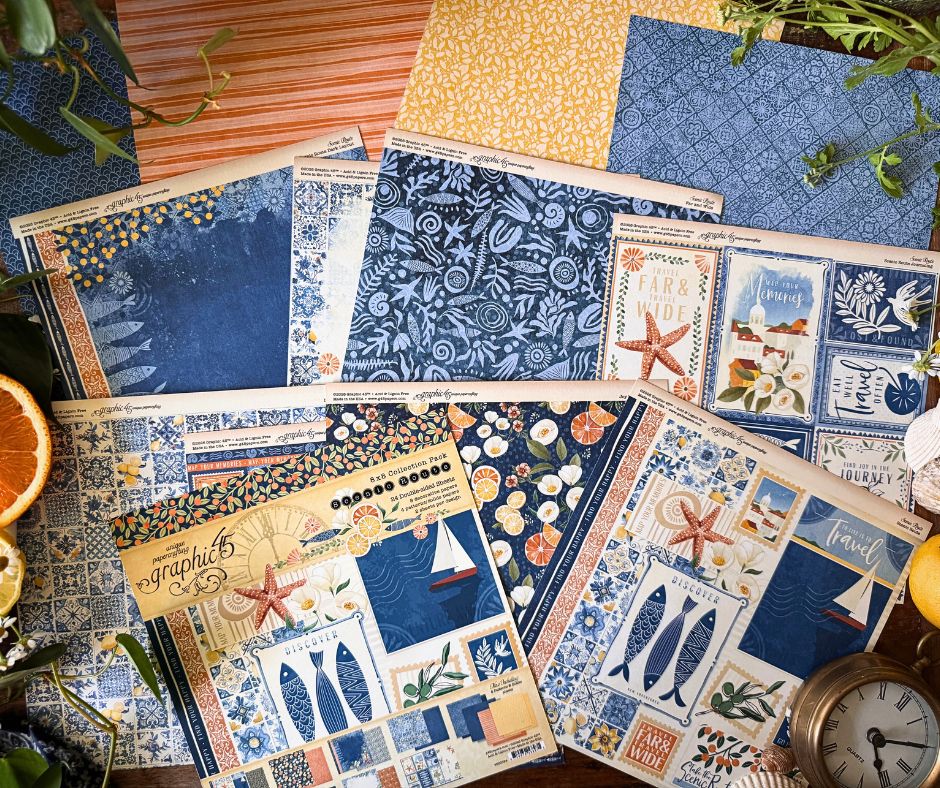 Set off on a creative journey with Scenic Route, a vibrant new paper collection inspired by the sun-soaked charm of the Mediterranean. Bursting with lively hues of orange, ultramarine blue, lemon yellow, and azure, this collection captures the joy of travel, fresh flavors, and coastal beauty.