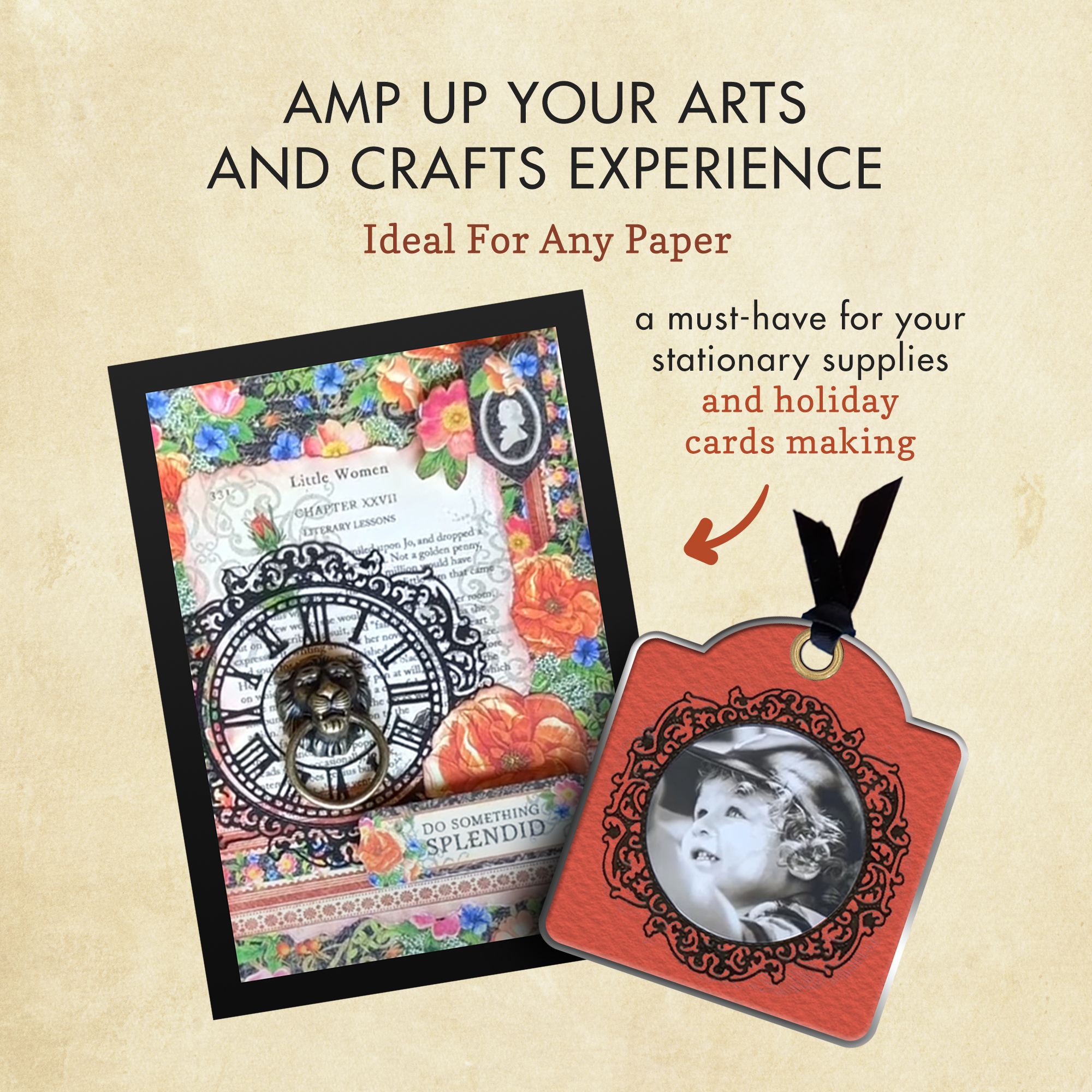 • There are 8 thin metal dies that measure .25″ x 1″ to 4.5″ x 5″ included in the package.