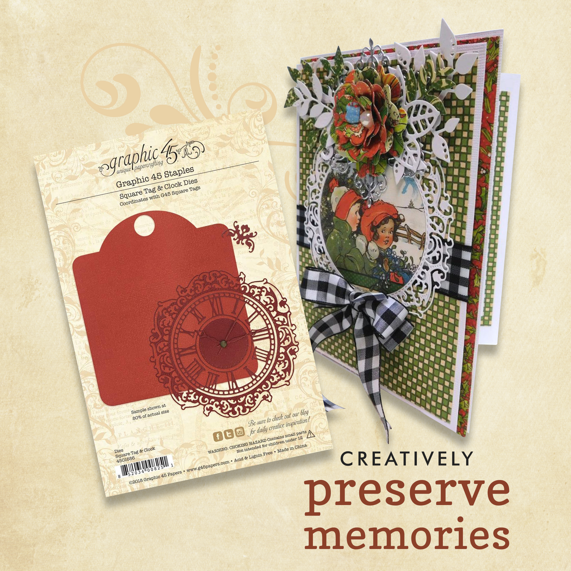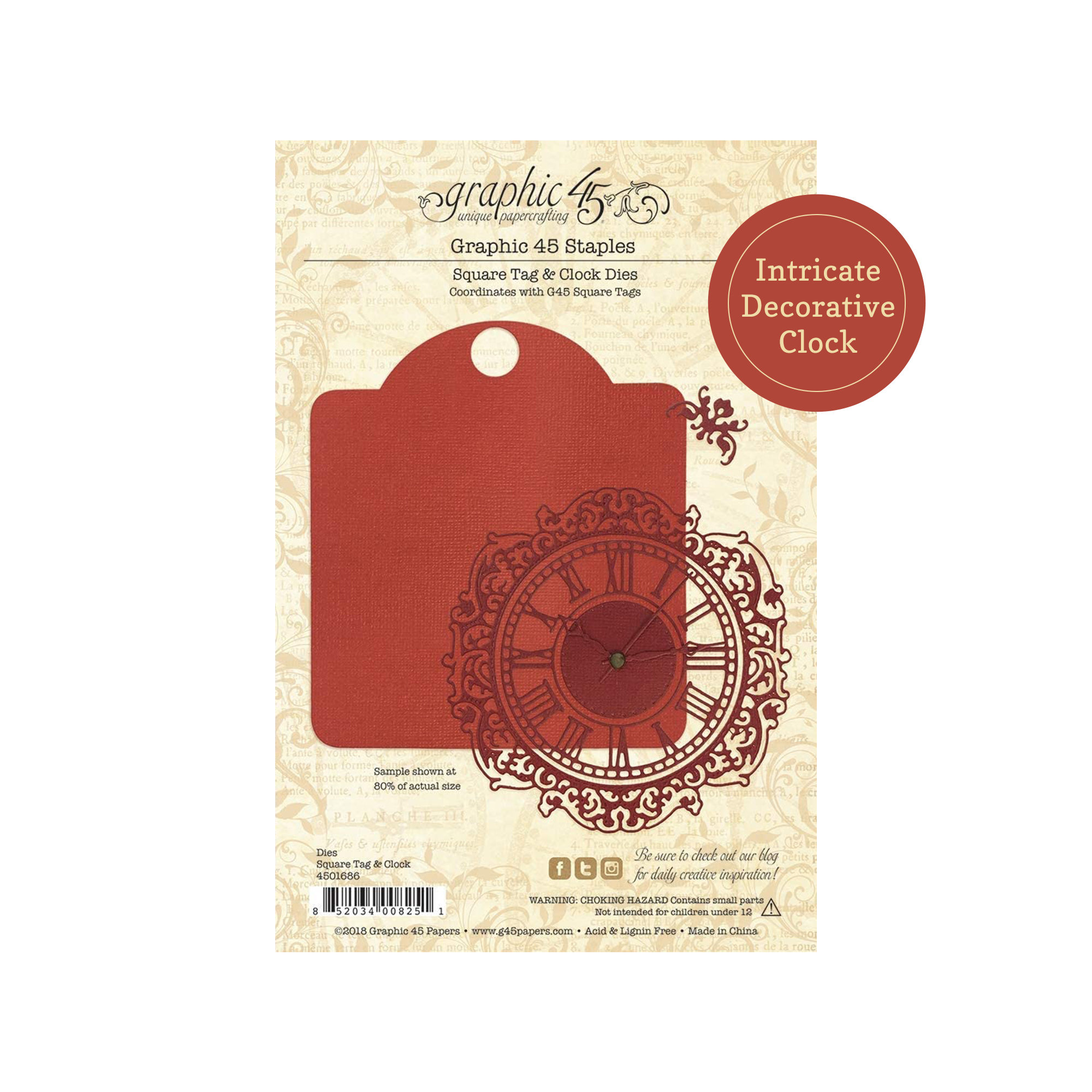 Find time to craft with the Square Tag and Clock Metal Dies from the Staples Collection by Graphic 45.