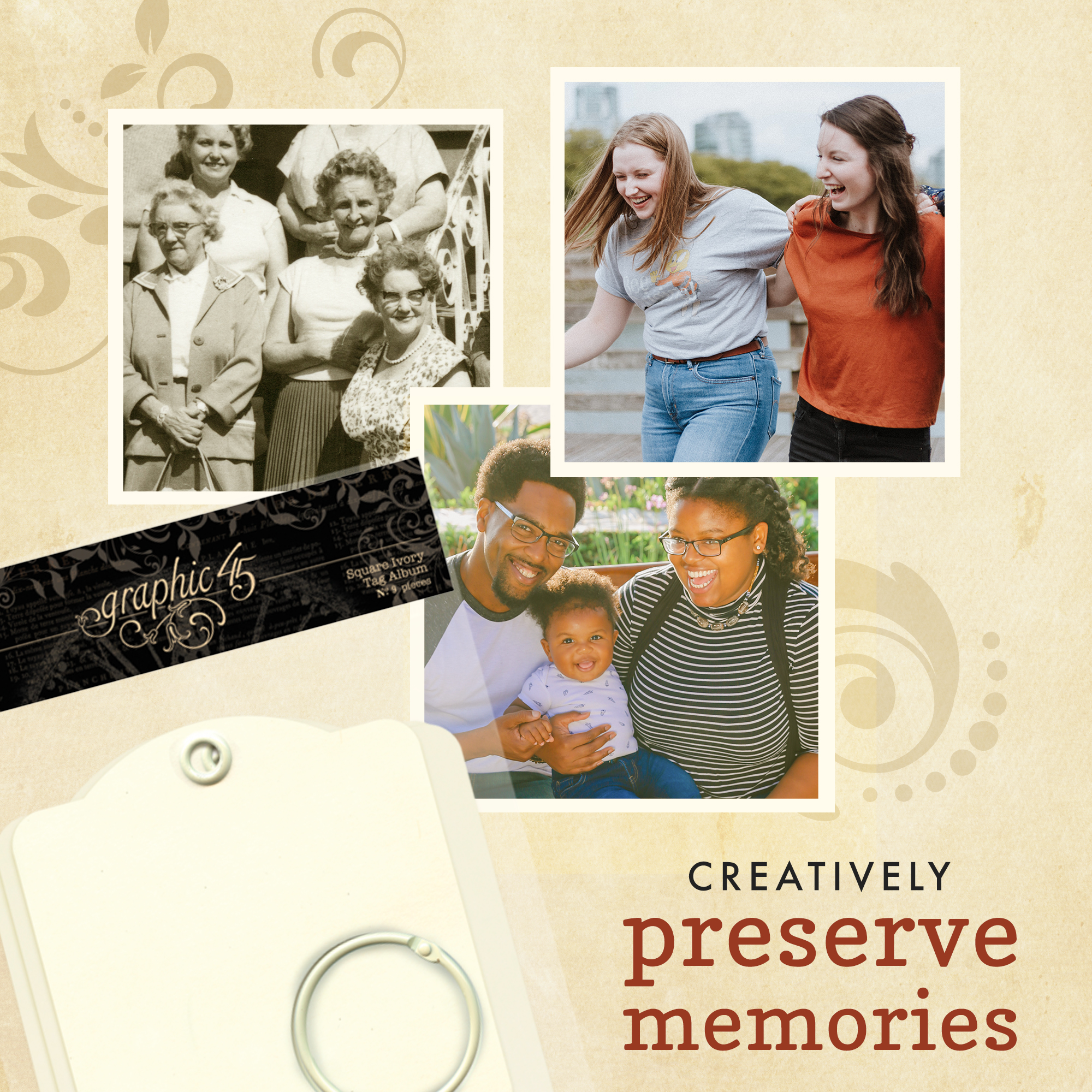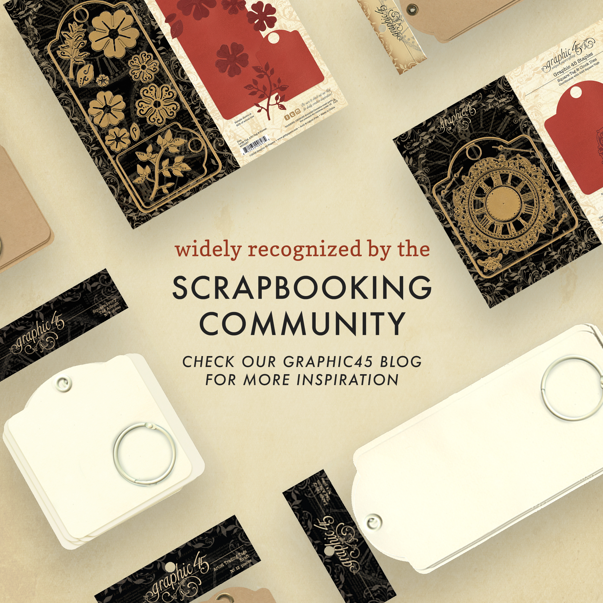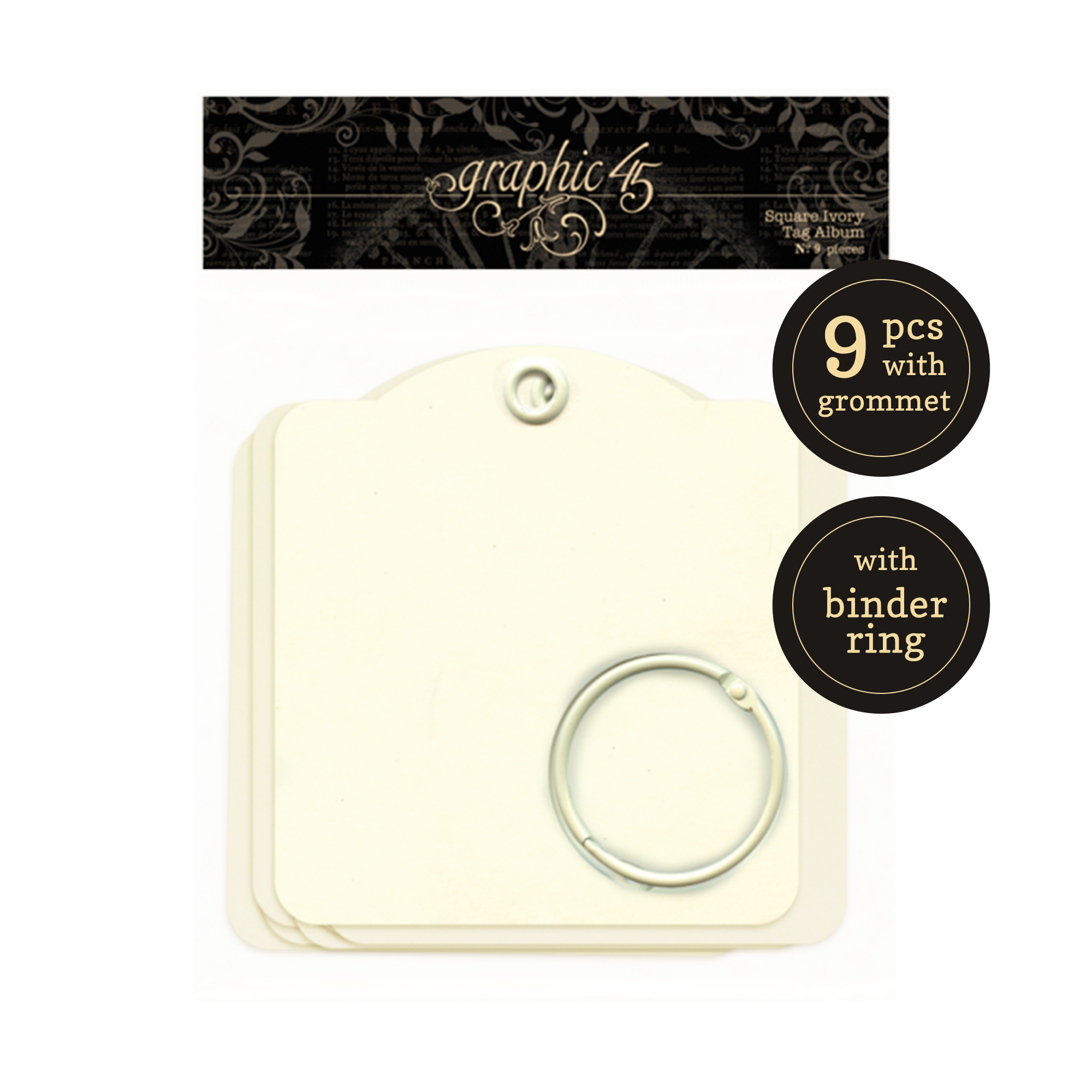 These work beautifully with any Graphic 45 paper collection, as well as 4 in x 4 in photos, and coordinate with Square Tag & Clock Dies.