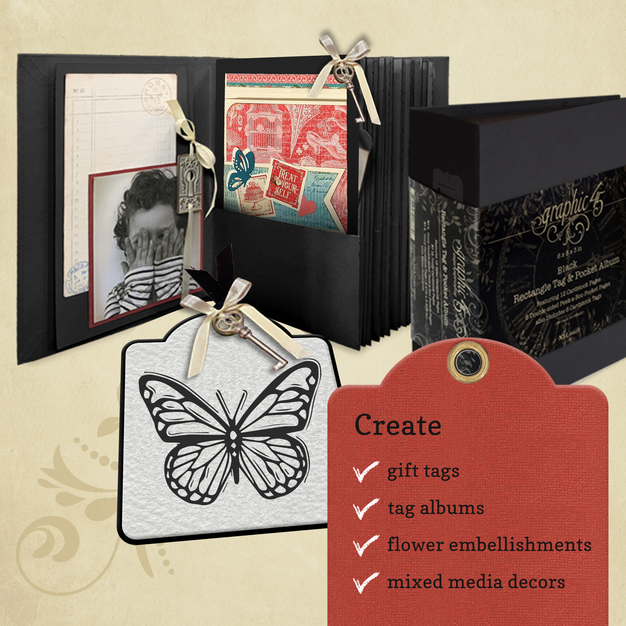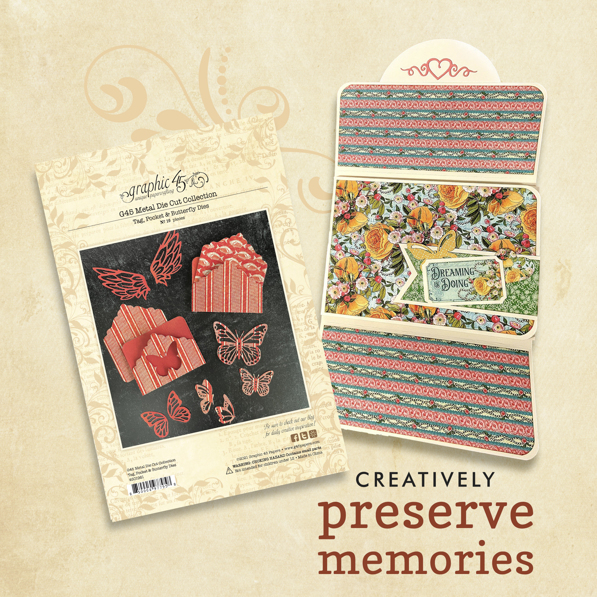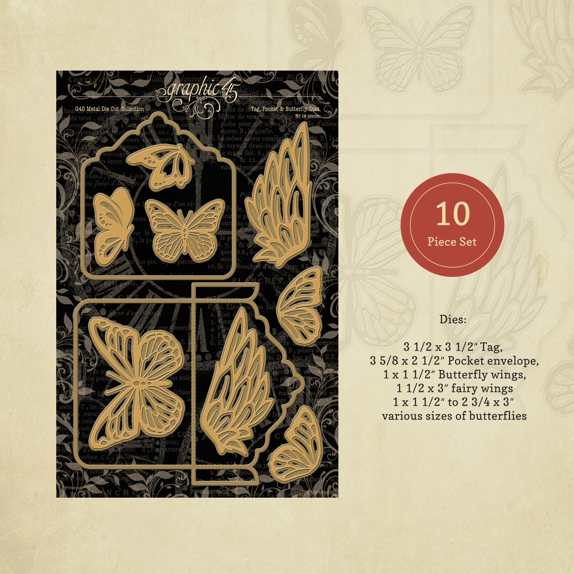 Graphic 45’s Tag, Pocket & Butterfly Metal Dies – SKU: 4501981