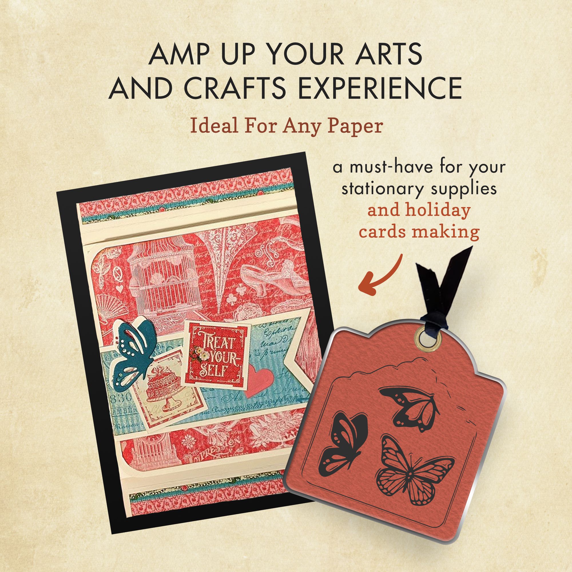Pick up the Tag, Pocket and Butterfly Metal Dies from our Staples Collection. There are 10 thin metal dies included in the shapes of pockets and butterfly wings. The dies are compatible with most die cutting machines.