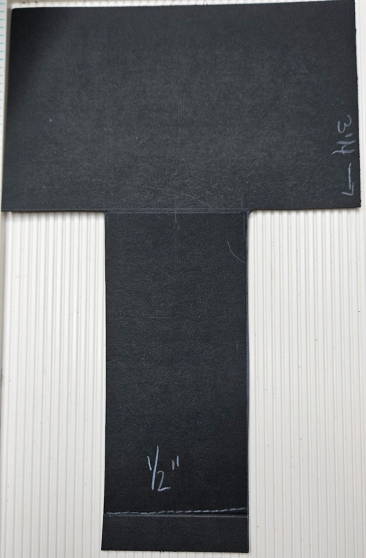 1 piece at 3”X5 ⅜” scored lengthwise at ½”,1”,1 ½”,2”,and 2 ½”