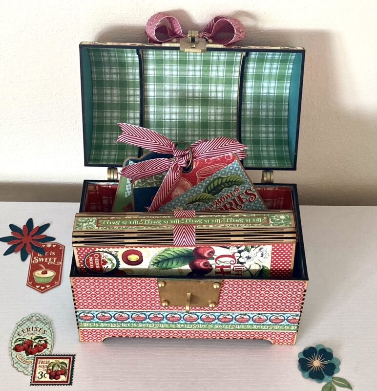 Last, but not least, Kristine shares a Treasure Box, Recipe Book, and Tags. Indulge in the sweetest creations with our Life’s a Bowl of Cherries collection! This fine crafted Treasure Box is filled with delightful surprises, including a set of tags and a recipe book.