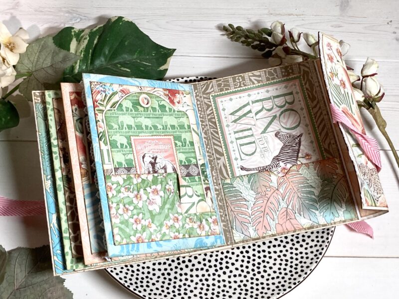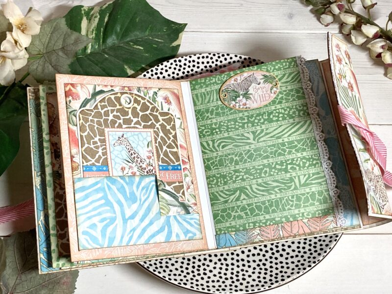 Next we are excited to share a Wrap Around Album. Discover the beauty of Kristine’s Wrap Around Album! Using the captivating Wild & Free paper collection (at a fantastic 50% off clearance price).