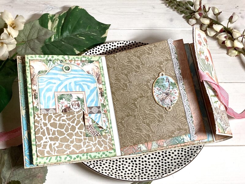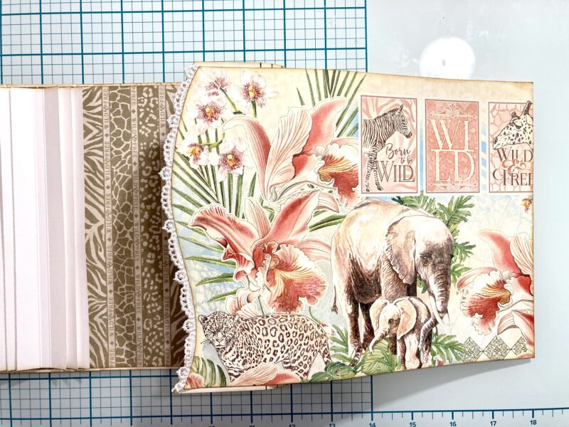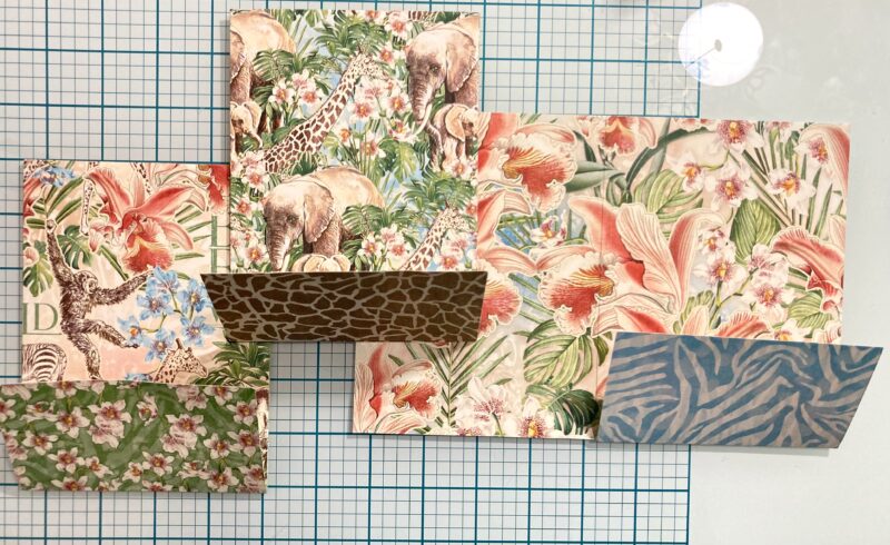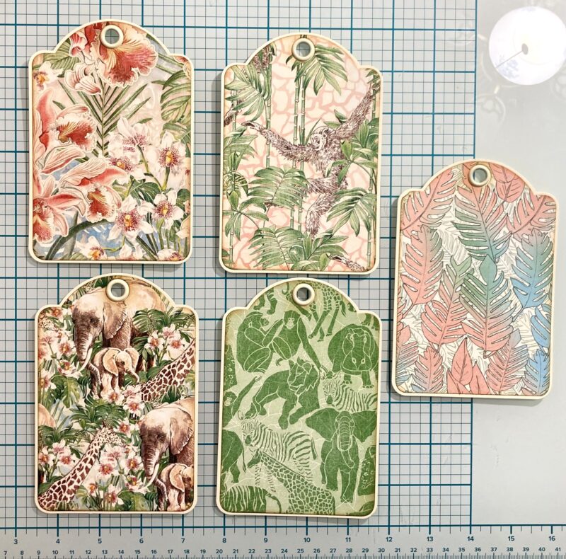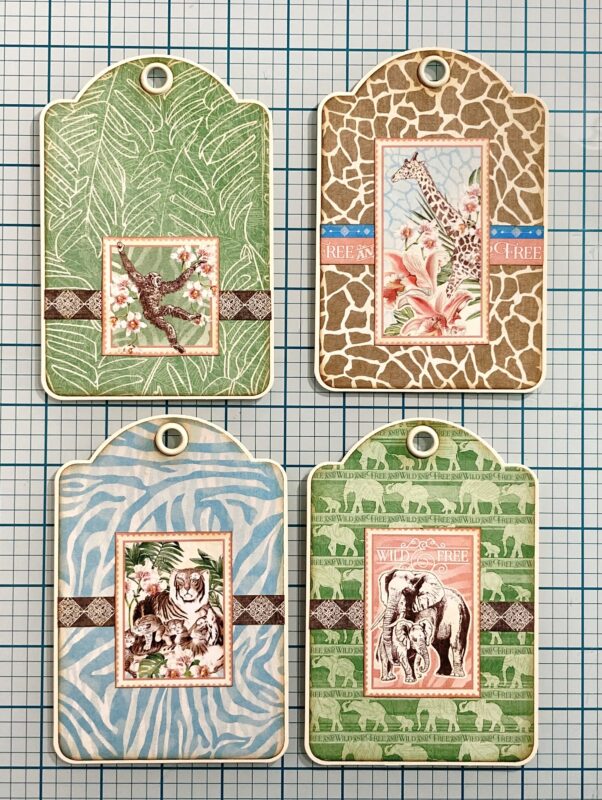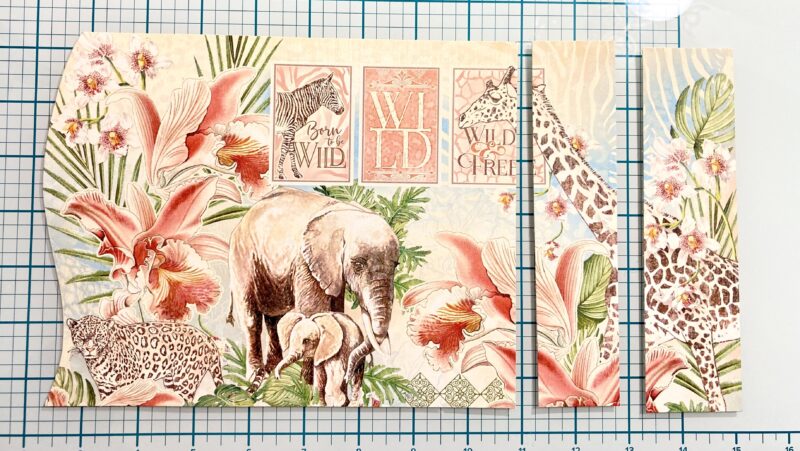 Step 24: Follow step 24 in the Club G45 tutorial using Savanna Babies, Lush and Lovely, and Mighty Menagerie papers.