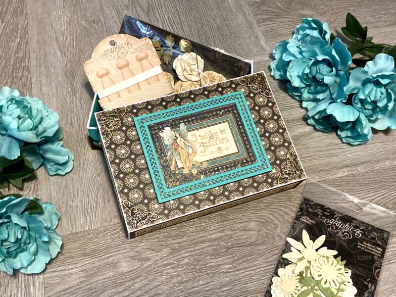 “Hi crafty friends. I am so excited that Graphic 45 released Enchanted Forest as a Deluxe Collector’s Edition. The color palette and images in the collection are gorgeous and so much fun to use! For my #G45Reel project, I will show you how to make the shaker box top and then you can see my completed box at the end.
