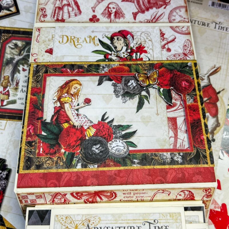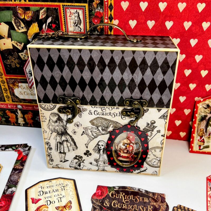 Fall down the rabbit hole and into a world of creativity with this Alice in Wonderland-inspired Suitcase Mini Album! Designed by Graphic 45 Brand Ambassador Gina Long, this enchanting project transforms the Square Tag & Pocket Wrap-Around Album into a vintage-style suitcase, wrapped in the whimsical prints of our Curiouser & Curiouser paper collection. With interactive window pages, charming embellishments, and a layered waterfall feature, this mini album is perfect for capturing your most magical memories. Ready to embark on your own Wonderland adventure? Follow along with Gina’s step-by-step video tutorial and craft your own fantastical keepsake! And don’t forget today is the last Day to enter the March #G45Album Challenge.