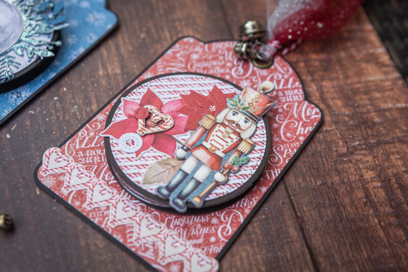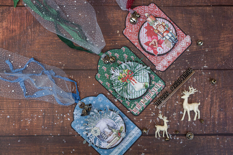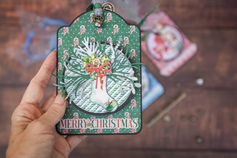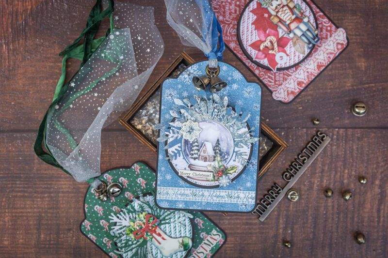 The design itself was so much fun to create. Layered circles, die cuts, chipboard pieces, and ephemera from the collection helped me build depth and texture. I added a few ribbons and small jingle bells, so every tag jingles softly, bringing that unmistakable festive sound that instantly sets the holiday mood.