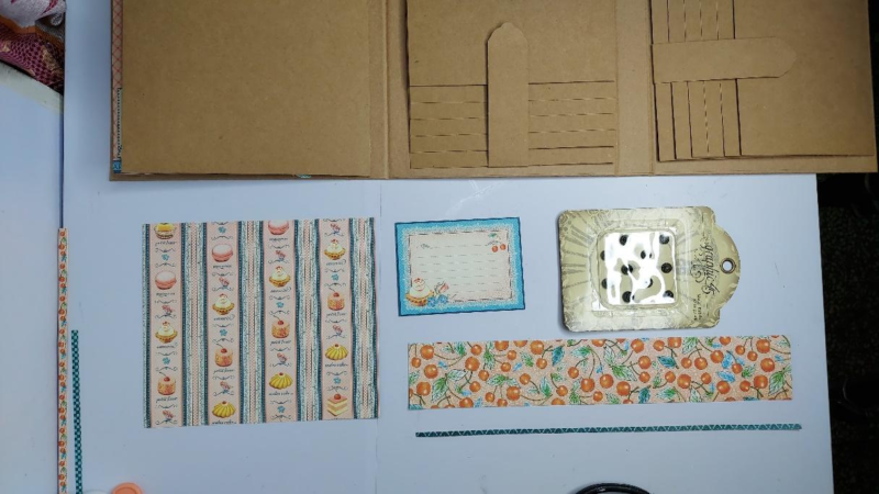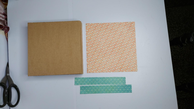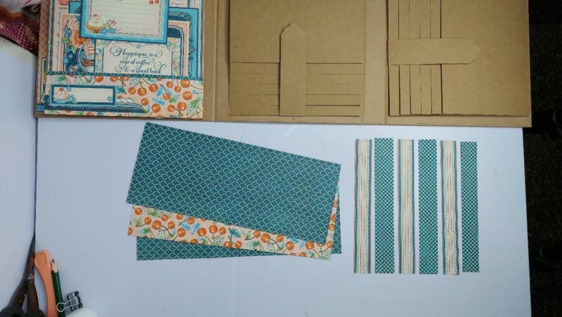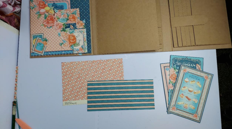 I have cover the page base using 7” * 7 ¼” size of pattern paper, also I have covered the pocket making sure to use the contrast papers.