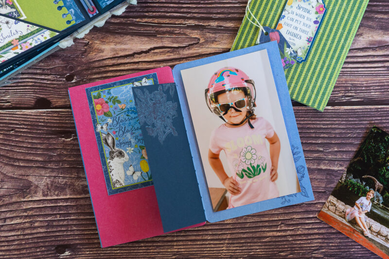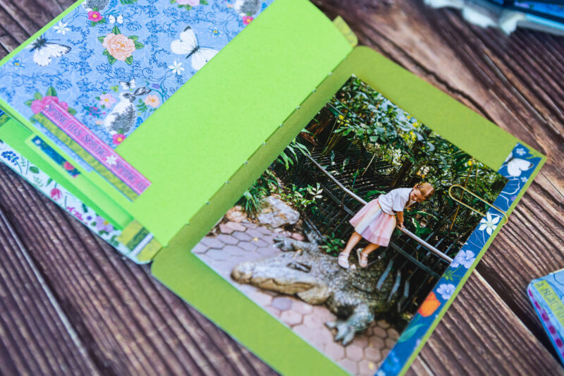 These signatures were created to go inside a mini album, but they can easily be used on their own. I bound them with eyelets and elastic so they can be removed and rearranged. Inside, I’ve already added a few photos from a family trip to a tropical bird park — and there’s still plenty of room for more memories.
