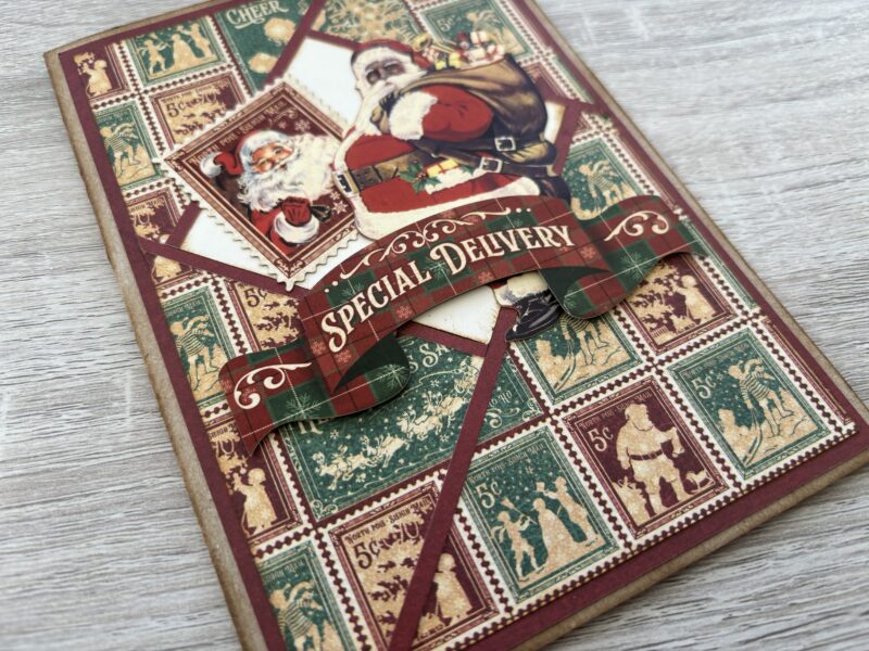 “Hello G45ers. It’s Paul back with an unexpected project. This was not my intended tutorial however I ran into a bit of a problem. I ended 2023 with a broken thumb and went into the New Year in a cast. As you can imagine, crafting was off the table whilst I got used to having a hand in a cast. Well it has come off however the album I intended doing will have to wait. I did not want to leave you high and dry so had a think at what I could maybe do which could be done with straight lines, trimmer and not too much grip or pressure needed. So I decided to make a faux Iris card. This is based on the Iris of a camera as it opens but can be made totally flat for posting. I used Let’s Get Artsy and used the ephemera pack to save on fussy cutting (straight lines are plenty at the moment).” ~Paul