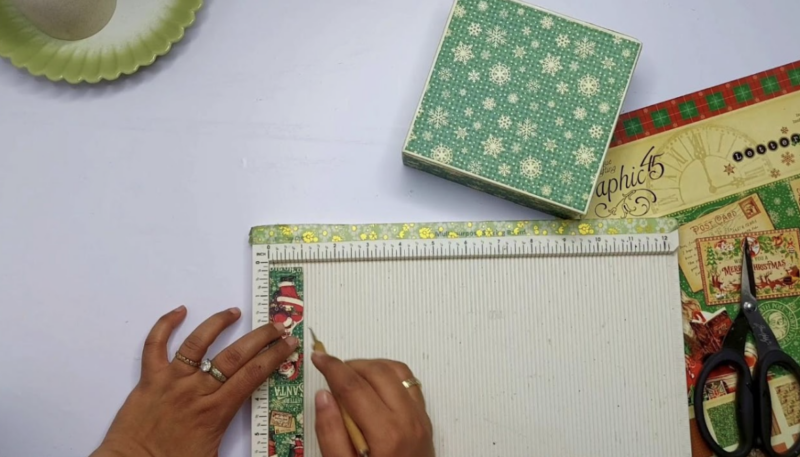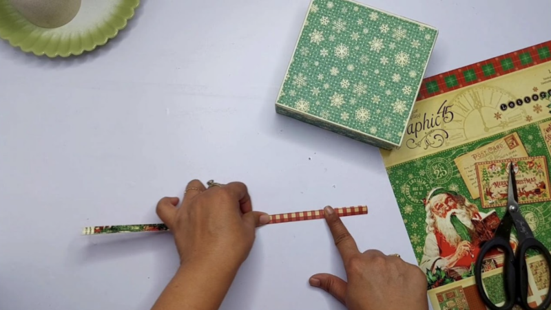 Now I will paste the strip on box to give it a suitcase look. I have given 1” space from left and right side of the box.