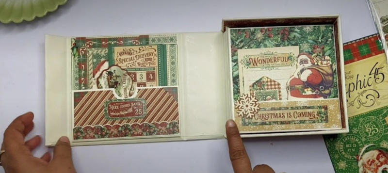 For my today’s project, Letters to Santa 12×12 Collection Pack with Stickers and Album in a Box (Ivory) from Graphic 45 are the main heroes.