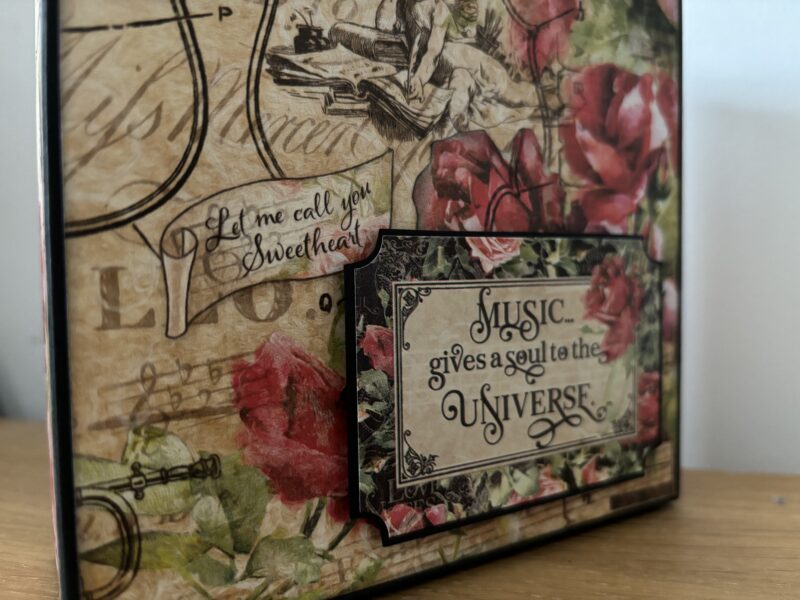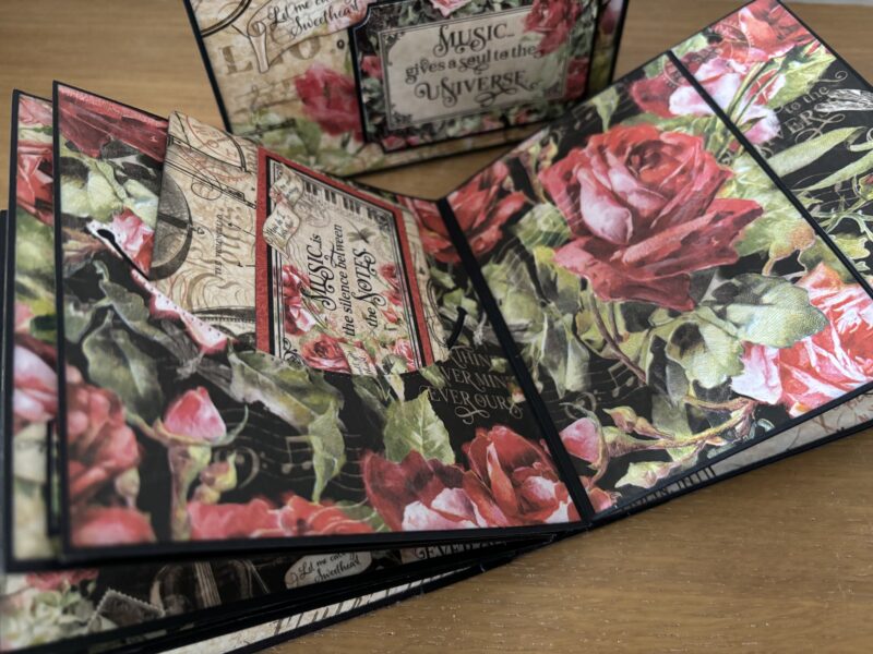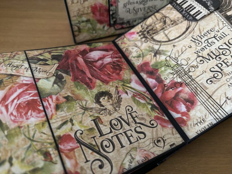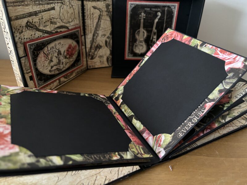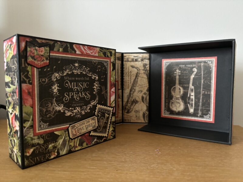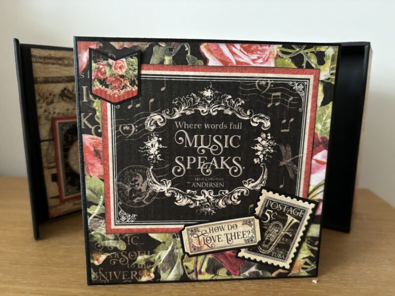 “Hello all you Graphic 45 fans out there. It’s Paul Ford back with another Brand Ambassador project for you. I decided to use one of the pre-made projects for this one and so went with the Album In A Box – but I’ve added my own twist by making a cover for the pages so it is an album that can be stored in the box and then taken out. I used the Graphic 45 Black Chipboard for this. The collection I decided to feature was Love Notes.” ~Paul