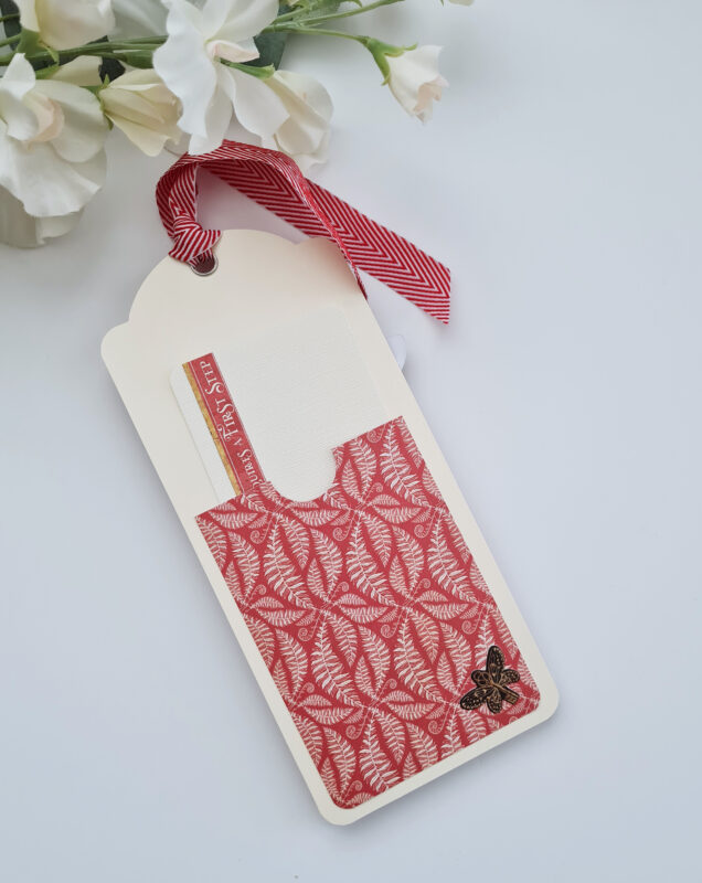 I decorated the smaller tag (on which to write the message) using a cutout from one of the 12×12 papers and added ribbon to finish the look.