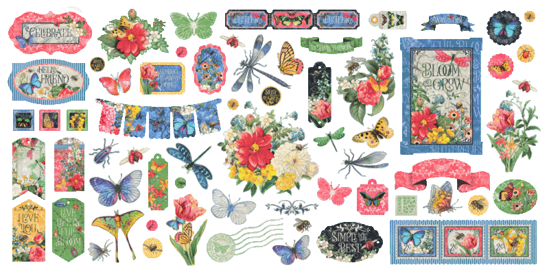 New Graphic 45 Keepsake – Flutter! 150+ Pieces, Metal Dies